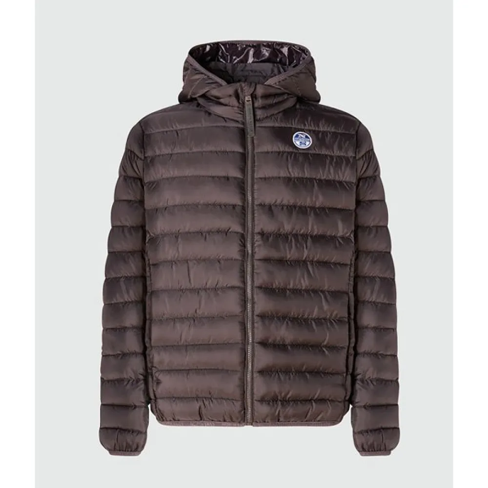 Veste de type doudoune en nylon micro-ripstop recyclé avec rembourrage en Repreve et matelassage rayé.