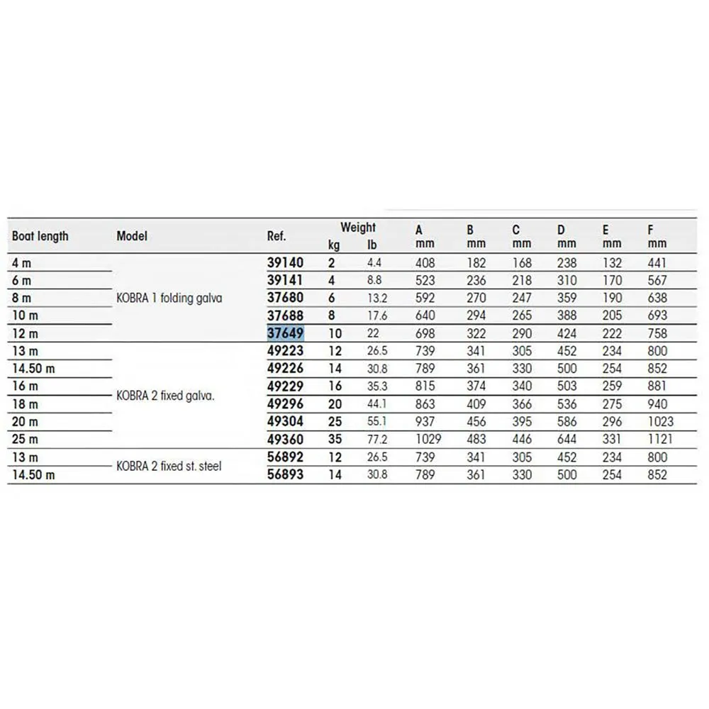 Les performances exceptionnelles de la Kobra résultent de ses proportions géométriques particulières qui vous permettent de choisir en toute sécurité jusqu´à 2 tailles en dessous du poids d´ancre habituellement recommandé.