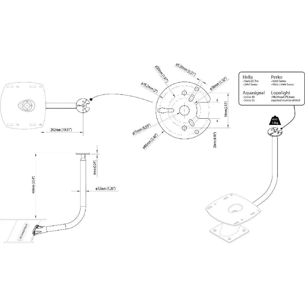 L´installation est simple et sans tracas, grâce au système de montage innovant de SCANSTRUT. Le mât peut être fixé solidement à une variété de surfaces, offrant une flexibilité de placement et garantissant une base stable pour vos feux de navigation. Sa construction robuste et ses matériaux résistants à la corrosion garantissent des performances à long terme, même dans les environnements d´eau salée.