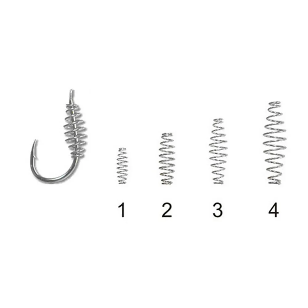 Conception conique innovante : Le ressort présente une forme intelligente et conique qui le rend incroyablement facile à enfiler sur la hampe de l´hameçon Cette conception facilite non seulement une installation rapide, mais crée également une base plus large pour mouler l´appât, assurant un maintien ferme et stable qui ne glissera pas facilement et ne se détachera pas.