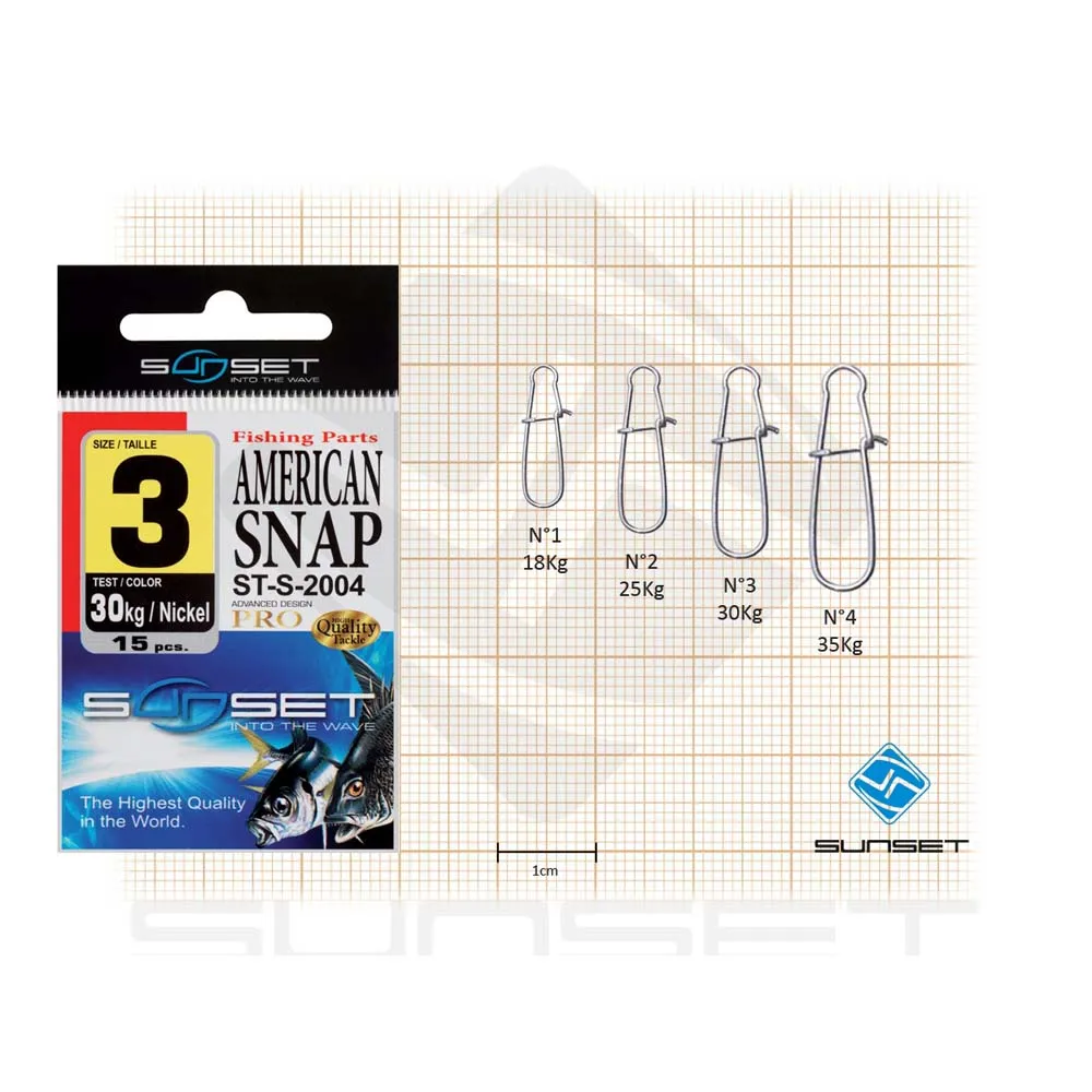 L´émerillon agrafe rapide de sécurité baril SUNSET est disponible en plusieurs tailles pour correspondre parfaitement à votre espèce cible et à votre montage de pêche.