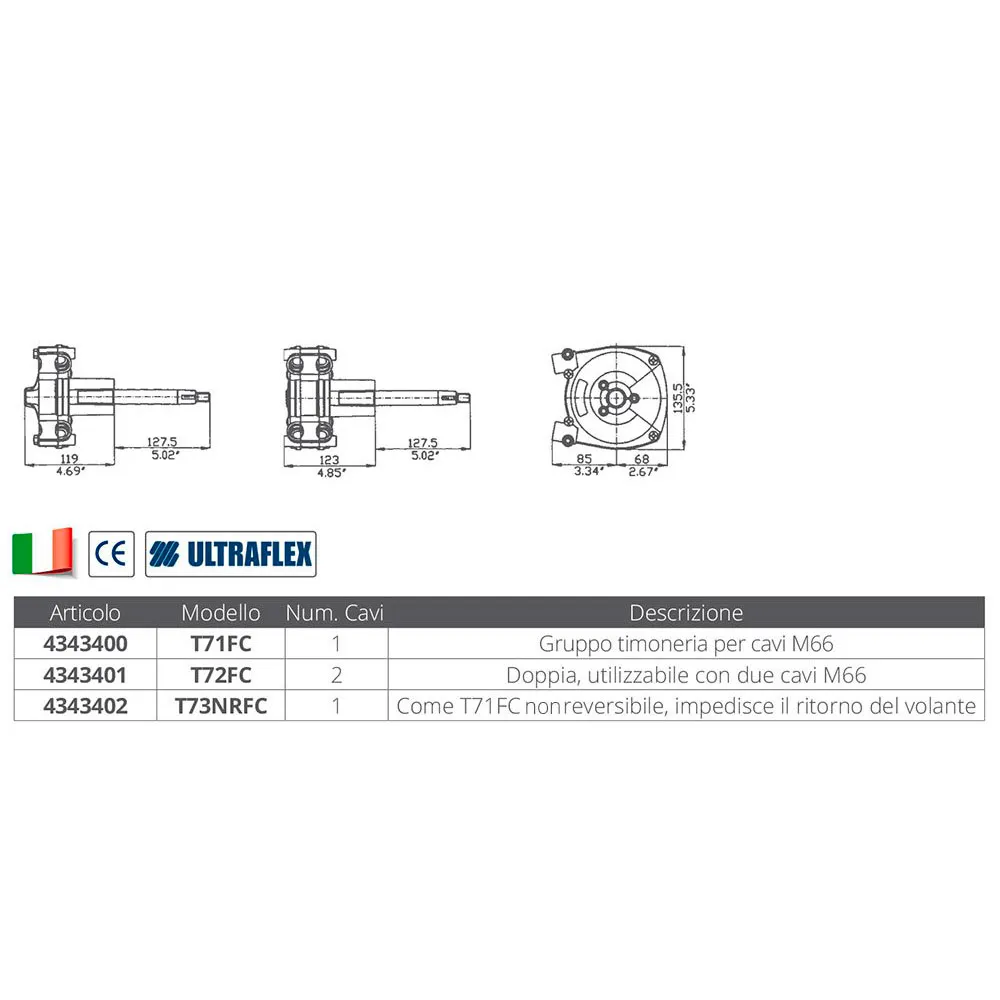 Caractéristiques techniques Ultraflex Système de direction T73 NRFC
