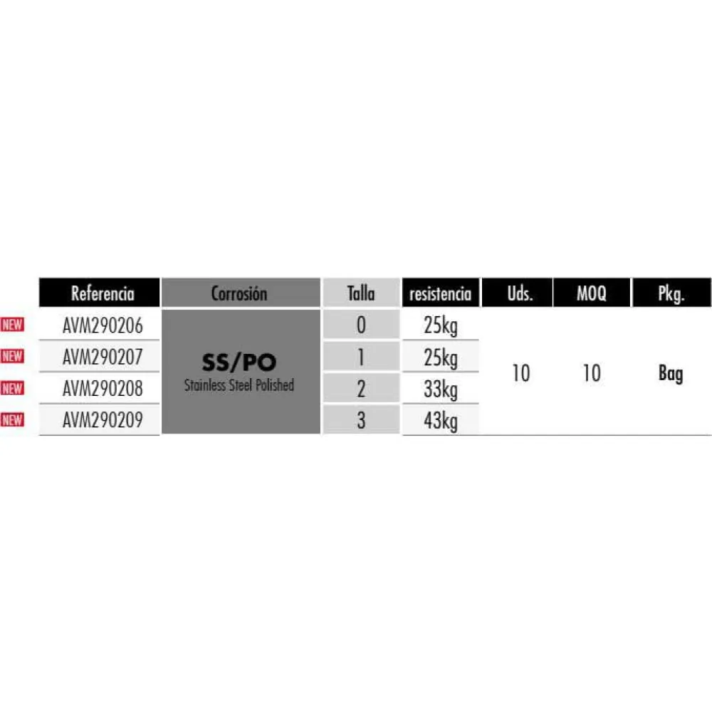 L´agrafe VMC 3533 Duolock Strong Snap est disponible dans une gamme de tailles pour s´adapter à différents poids de ligne et types de leurres. Choisissez la taille qui convient le mieux à vos besoins de pêche et aux espèces ciblées. De la pêche de finesse avec des lignes légères aux applications offshore intensives, il existe un Duolock Strong Snap pour répondre aux exigences de chaque pêcheur.