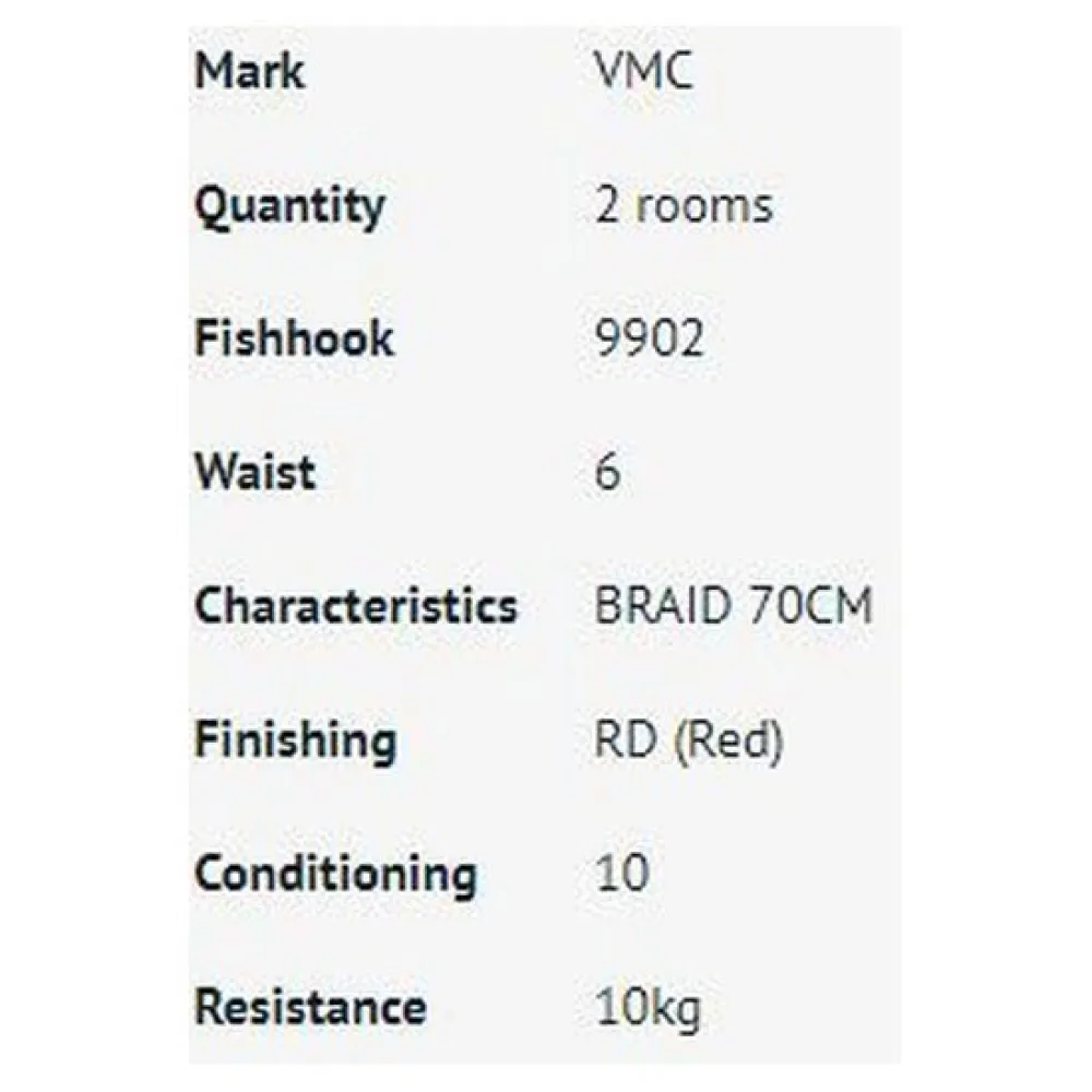 L´hameçon monté VMC Zander Ryder est disponible dans une gamme de tailles pour s´adapter aux différentes présentations d´appâts et cibler les sandres de toutes tailles. Que vous pêchiez avec des appâts vivants, des poissons morts ou des leurres souples, il existe un hameçon Zander Ryder parfaitement adapté à vos besoins. La finition en nickel noir de l´hameçon offre une résistance exceptionnelle à la corrosion, assurant une performance durable même dans les environnements d´eau douce difficiles. Cette finition durable contribue également à minimiser la visibilité sous l´eau, améliorant encore l´efficacité de l´hameçon. Spécifications Techniques :