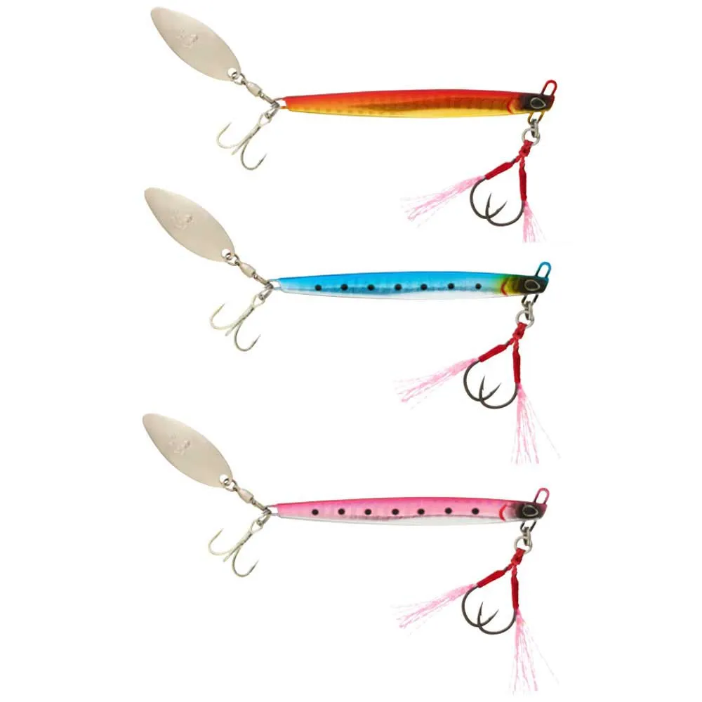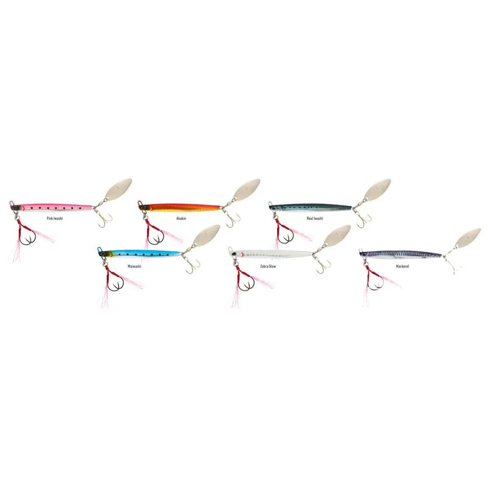 Il Samourai Spin Jig è un´esca versatile che può essere pescata in diversi modi. Dotato di una lama che imita la coda di un pesce in fuga e che emette molto bagliore sott´acqua. Prova animazioni a dente di sega durante il recupero o jig verticali sotto una barca. A differenza della maggior parte dei jig, puoi anche provare recuperi lenti poiché gli ingegneri Daiwa lo hanno progettato in modo che il jig si adatti orizzontalmente alla caduta. Ciò crea un´azione oscillante attraente una volta che la lama inizia a girare, che può rivelarsi irresistibile per i predatori in attesa.