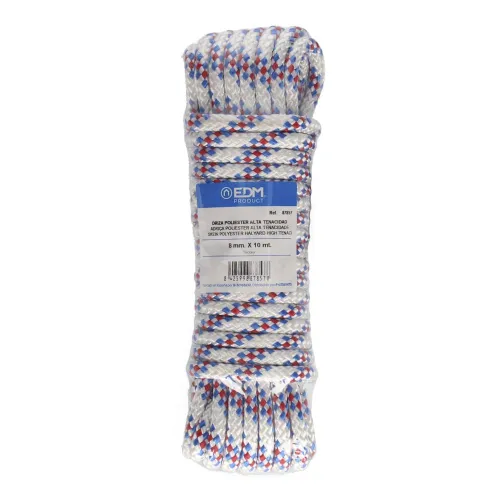 EDM 87857 Drizza in Poliestere ad Alta Tenacità | Cima Tricolore 10m x 8mm