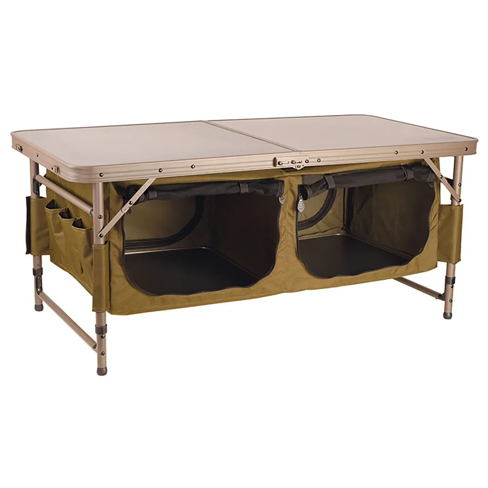 Una soluzione 2 in 1 che combina un grande tavolo con uno spazio di archiviazione sottostante per sessioni più lunghe