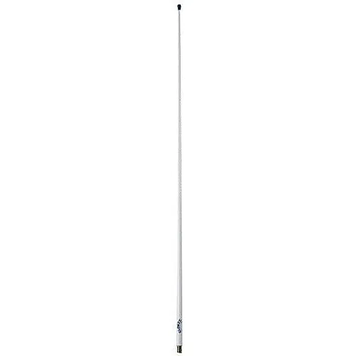 gli elementi in ottone interni. Lungo 1,2 m (4 ´), con un guadagno di 6dB, l´antenna è sia per l´installazione masthead per avere le migliori prestazioni di trasmissione, e per l´installazione su barche a motore grazie a vari supporti opzionali. Sul fondo, l´antenna ha una ghiera filettata 5/8 "x24