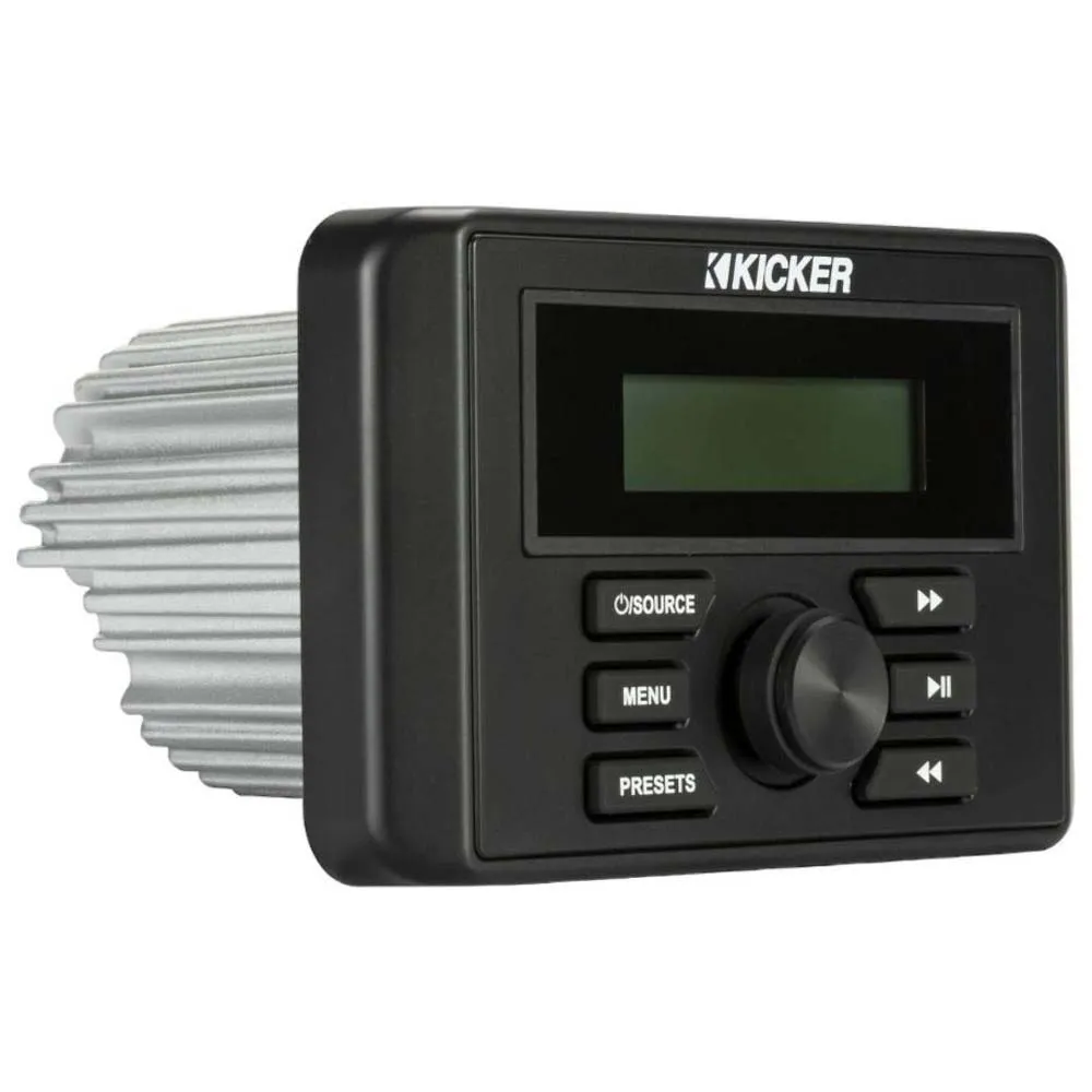 Il KMC3 è costruito per resistere agli elementi, vantando una certificazione IPX6 per la resistenza agli agenti atmosferici, garantendo che possa gestire potenti schizzi, forti piogge e sole intenso senza perdere un colpo. Il suo schermo LCD a colori da 2.5 pollici offre una visibilità cristallina delle informazioni sulla traccia, della sorgente e delle impostazioni, anche alla luce diretta del sole, e presenta una modalità giorno/notte per una visualizzazione ottimale in qualsiasi momento. Con versatili opzioni di connettività tra cui Bluetooth per lo streaming audio wireless, una porta USB posteriore per la riproduzione e la ricarica e un ingresso ausiliario RCA, puoi riprodurre musica da praticamente qualsiasi dispositivo. Questa unità funge anche da potente hub per l´espansione del sistema, con uscite pre-amplificate anteriori, posteriori e subwoofer per collegare e controllare amplificatori esterni per un sistema audio veramente personalizzato e ad alte prestazioni. Per una maggiore comodità, il KMC3 è compatibile con i telecomandi KICKER cablati (come il KRC12, venduto separatamente), consentendoti di gestire la tua musica da più posizioni sulla tua imbarcazione o veicolo.