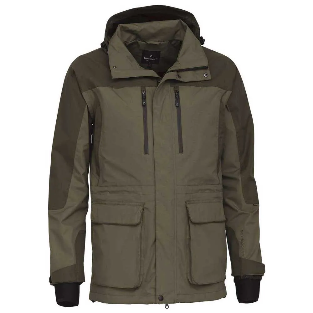 Kinetic Forest Jacket è una pratica giacca da esterno con membrana Proxtex antivento e impermeabile con comfort traspirante. Realizzato in resistente tessuto Taslan in nylon 320d con rivestimento protettivo in PU. La membrana Proxtex è laminata con poliestere 210t e rete per un'elevata circolazione dell'aria e isolamento termico. Cuciture nastrate. Nove pratiche tasche. Cintura regolabile. Polsini in neoprene con regolazioni in velcro. Cappuccio staccabile.