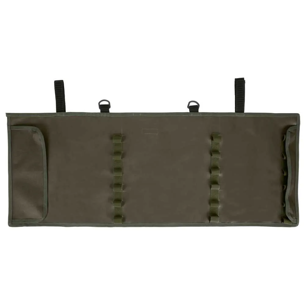 Questo design compatto ti consente di trasportare facilmente fino a sei picchetti con avvisatori o reggicanne. Ogni picchetto è tenuto fermo da anelli elasticizzati e viene mantenuto chiuso in un rotolo ordinato da due cinghie in tessuto. Completo di due anelli a D per un facile trasporto sui bagagli Korum. Realizzato in resistente materiale in PVC 600D facile da pulire.
