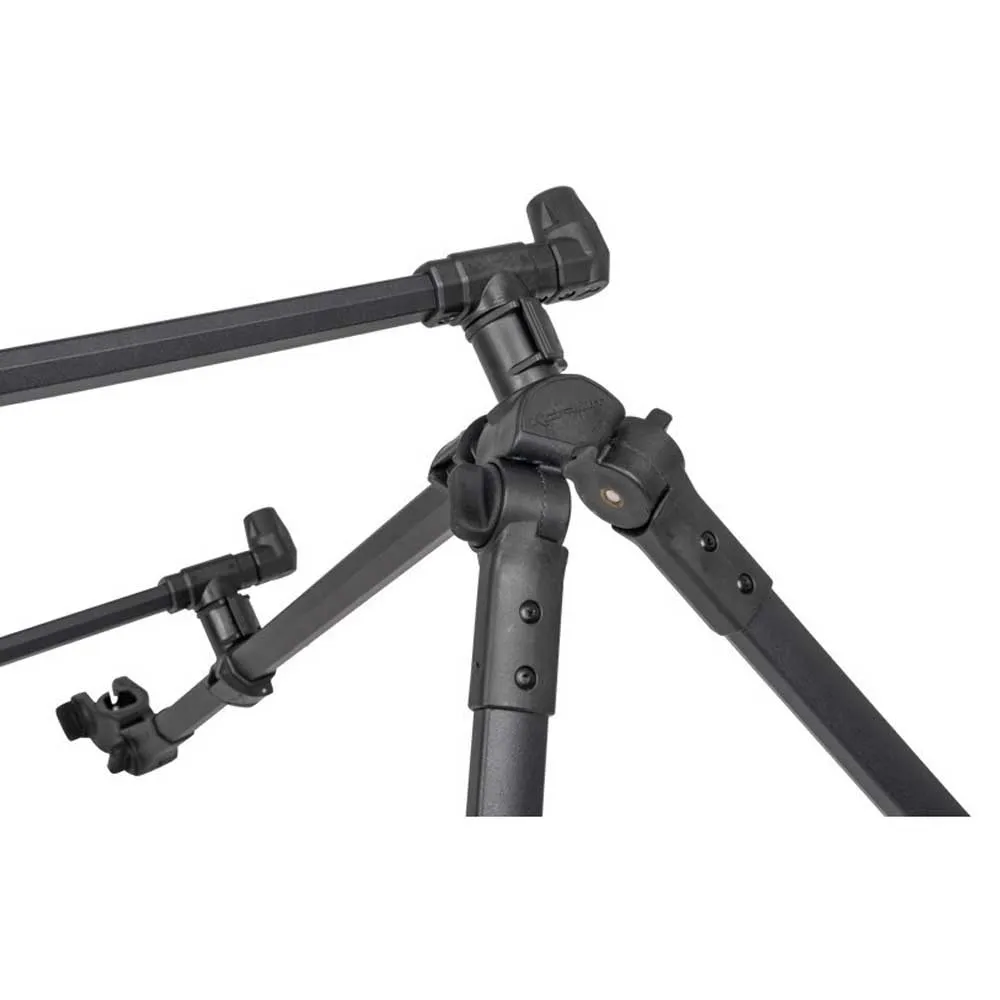Braccio di alimentazione a treppiede Progress per 2 canne. Ora con buzz bar anteriori e posteriori, questo kit super stabile è realizzato utilizzando estrusioni anti-torsione che forniscono una piattaforma totalmente stabile per le tue canne e mulinelli. Il telaio può essere esteso durante l´uso ma si ripone ordinatamente tramite bloccaggi a camma a doppia estensione, rendendolo molto più compatto durante il trasporto. I robusti buzz bar offset sono incredibilmente resistenti e dotati del nostro brillante sistema di sgancio rapido senza filettature, quindi non è necessario avvitarli e svitarli per usarli o rimuoverli, basta premere l´interruttore a camma e sei pronto. Il buzz bar posteriore può essere regolato in diverse posizioni sul telaio. Entrambi i buzz bar sono dotati di filettature per aggiungere poggiacanna o avvisatori di abboccata. Le gambe anteriori possono essere regolate a quasi qualsiasi angolazione e sono anche dotate di regolazione in altezza tramite interruttori a camma.