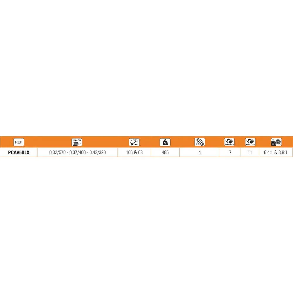 Max Drag @ Full con Freespool: 0,32 / 570, 0,37 / 400, 0,42 / 320