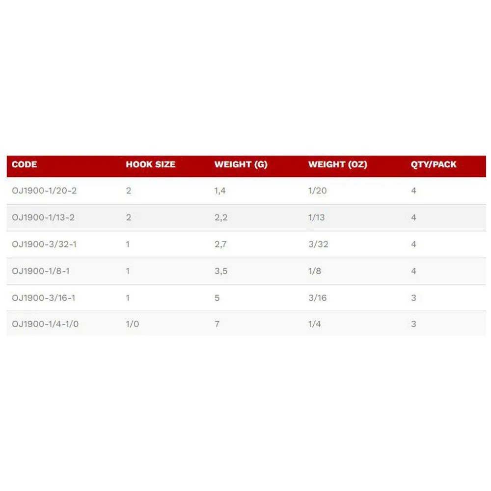 L'OJ1900 è perfetto per finesse e Ned Rig, dove è indispensabile utilizzare una testa piatta per ottenere una perfetta presentazione verticale e un effetto stand up dell'esca sul fondo. Questa particolare testa jig è realizzata in lega di zinco. Permette di utilizzare al meglio tutte le caratteristiche attrattive e le vibrazioni delle soft floating baits e in generale con tutte le soft baits come craws, creature e piccoli shad.