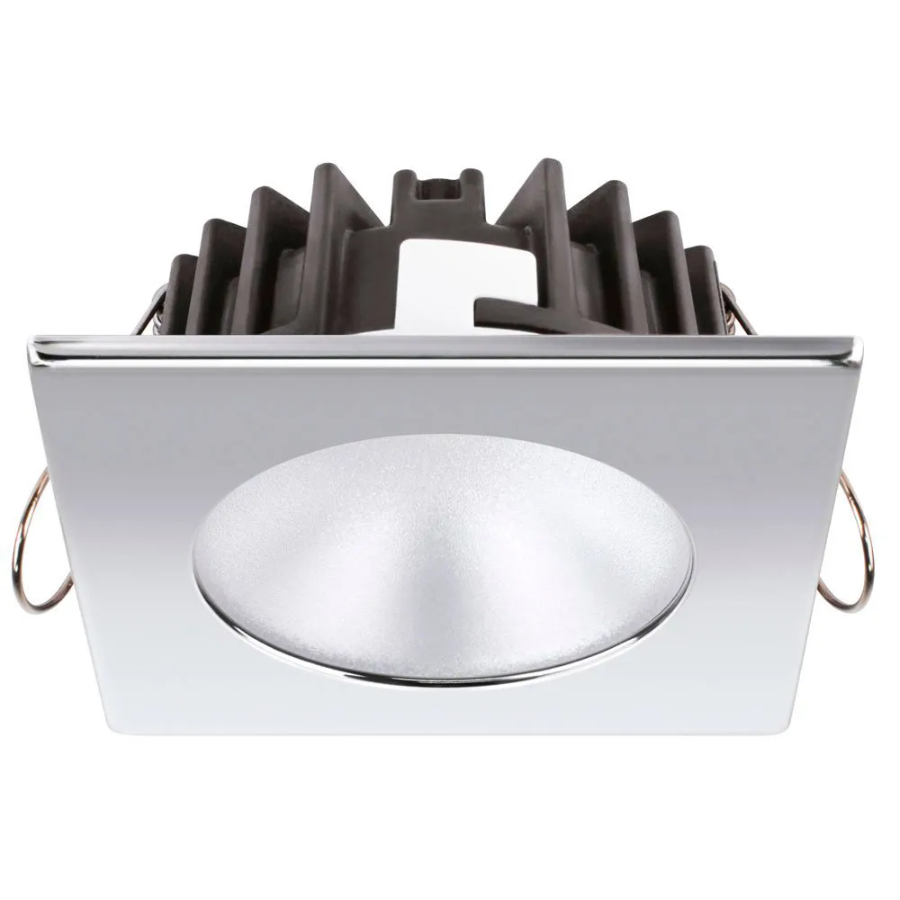 Faretto da incasso impermeabile IP66, con POWER LED ( 245 Lumen ) ad alta luminosità, luce bianca calda, corpo in acciaio inox AISI 316 lucido a specchio, con diffusore in materiale antiurto satinato, ideale per installazione a soffitto e a parete.
