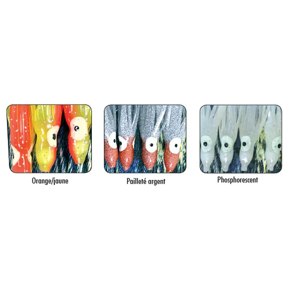Il RAGOT Mitraillette Octopus Rig non è solo un´altra esca da traina; è un sistema completo progettato per massimizzare le tue possibilità di allamare. Il suo design unico imita un branco di pesciolini, creando un´irresistibile attrazione visiva e vibrazionale che attira i pesci predatori da lontano. Le multiple gonnelline da polpo dai colori vivaci pulsano e svolazzano con movimenti realistici, creando uno spettacolo ipnotico che innesca attacchi aggressivi. Questa azione dinamica, combinata con il profilo realistico delle teste dell´esca, si rivela troppo allettante anche per i pesci selvatici più diffidenti.