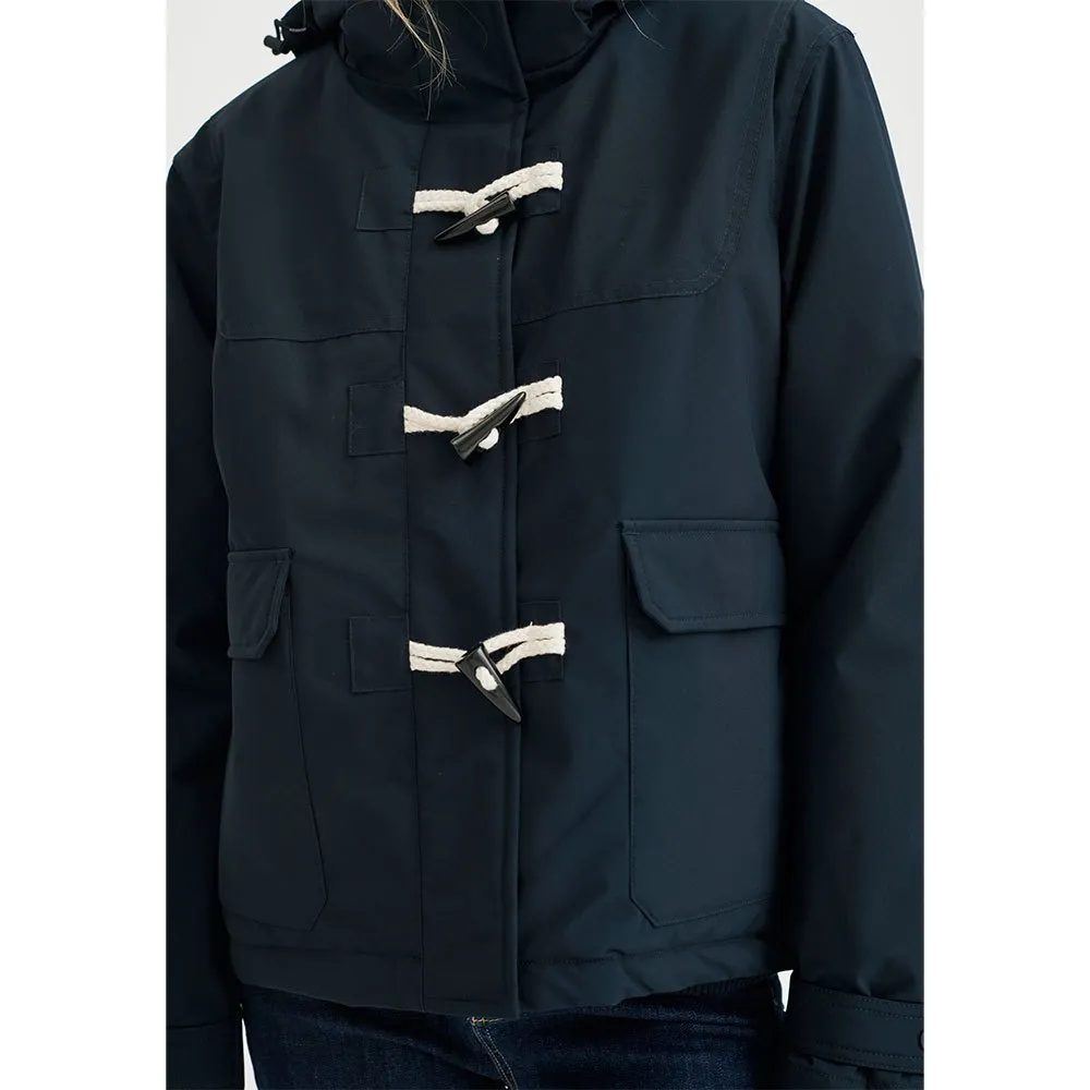 Un cappotto duffle tecnico, con funzionalità moderne di indumenti esterni.