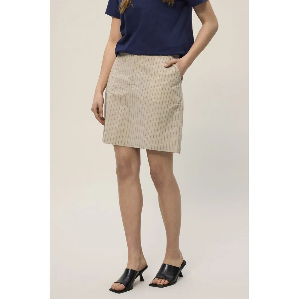 La gonna REDGREEN Nan Light Sand Stripe è un´aggiunta elegante e versatile a qualsiasi guardaroba femminile. Questa gonna presenta un bellissimo motivo a righe in un colore sabbia chiaro, che le conferisce un look chic e alla moda. La gonna ha un comodo elastico in vita per una vestibilità perfetta e cade appena sopra il ginocchio per una silhouette slanciata. Realizzata in un tessuto morbido e leggero, questa gonna è perfetta per le giornate calde o può essere abbinata a collant per un look più stratificato con temperature più fresche. Che sia abbinata a una blusa e tacchi alti o a un top casual e scarpe da ginnastica, la gonna REDGREEN Nan è un capo must-have per ogni donna alla moda.