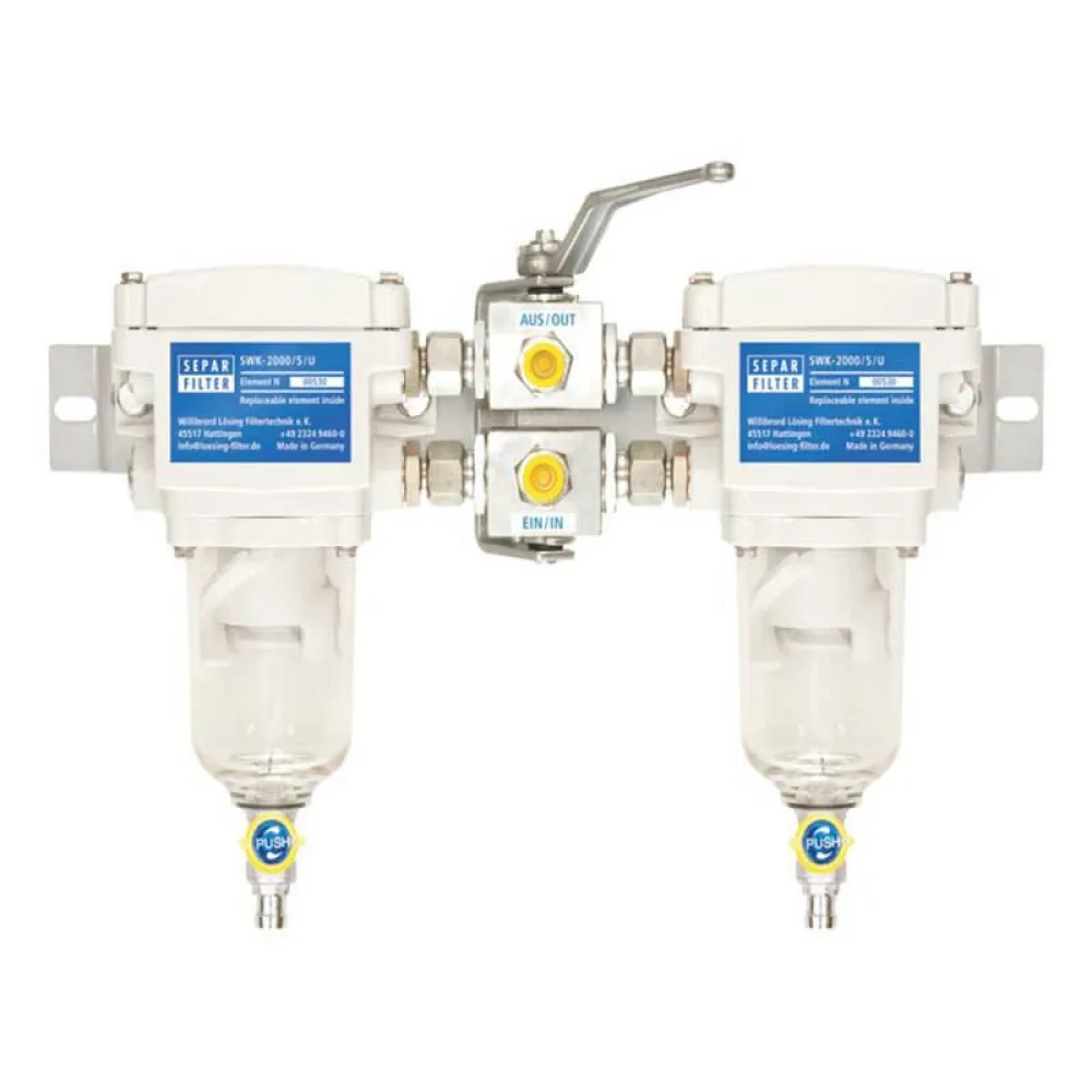 Il separatore acqua SEPAR FILTER SWK-2000/5 è un sistema di filtrazione altamente efficiente e affidabile progettato specificamente per barche e applicazioni a gas. È trasparente, consentendo agli utenti di monitorare facilmente il processo di separazione dell´acqua e del gas.