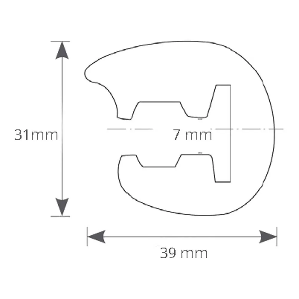 Profilo ala in PVC, tipo leggero per imbarcazioni con montaggio a battuta piana, richiede supporto base in duralene semirigido T.18, si adatta facilmente a qualsiasi curvatura. Conf. mt. 25, Peso gr./mt. 1220. Supporto a T art. 6566063. Tappo terminale art. 6566145B/6566145N. Coprigiunto 6566009/6566009B.