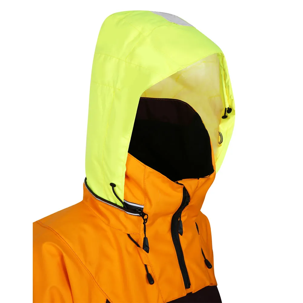 - Cappuccio ergonomico, regolabile, ad alta visibilità, ripiegabile nel colletto foderato in pile
