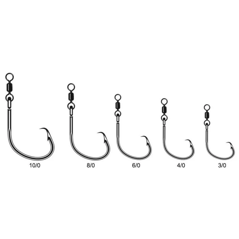 Uno dei famosi ami VMC Circle Hook montati per una perfetta presentazione dell'esca. Rotazione a 360° per una presentazione perfetta dell'esca e un migliore rapporto di aggancio