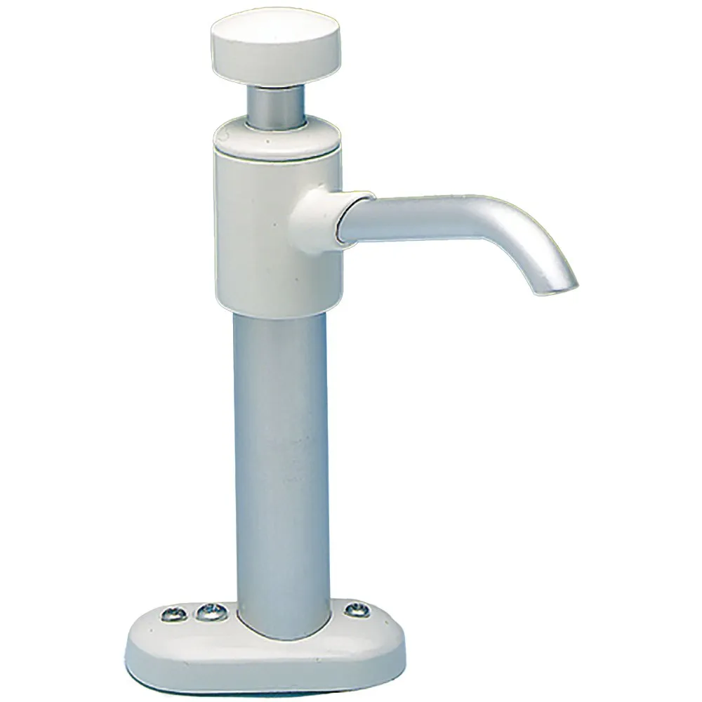 Questa pompa a mano verticale con beccuccio angolato e altezza regolabile da 3-1/2" - 15-1/4" è ideale per spazi ristretti tra i lavandini o ovunque lo spazio sia limitato.