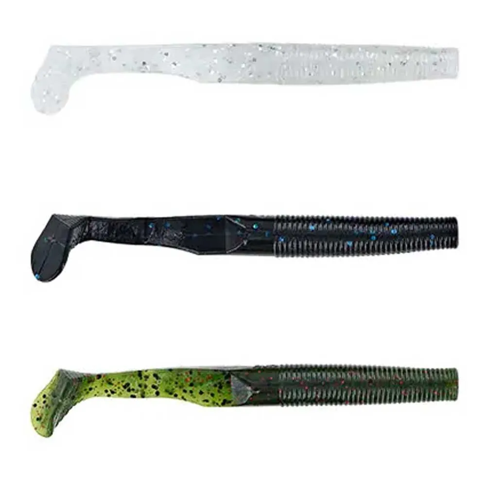 La Swimming Senko Soft Lure è disponibile in vari colori e fantasie accattivanti. L´opzione Blue Pearl/Large Silver Flake presenta una tonalità di blu vivace con grandi scaglie d´argento, che imita l´aspetto di pesci esca popolari. L´esca Green Pumpkin/Large Black Flake offre un aspetto più naturale con il suo colore verde zucca e grandi scaglie nere, rendendola perfetta per imitare i gamberi o altre prede.