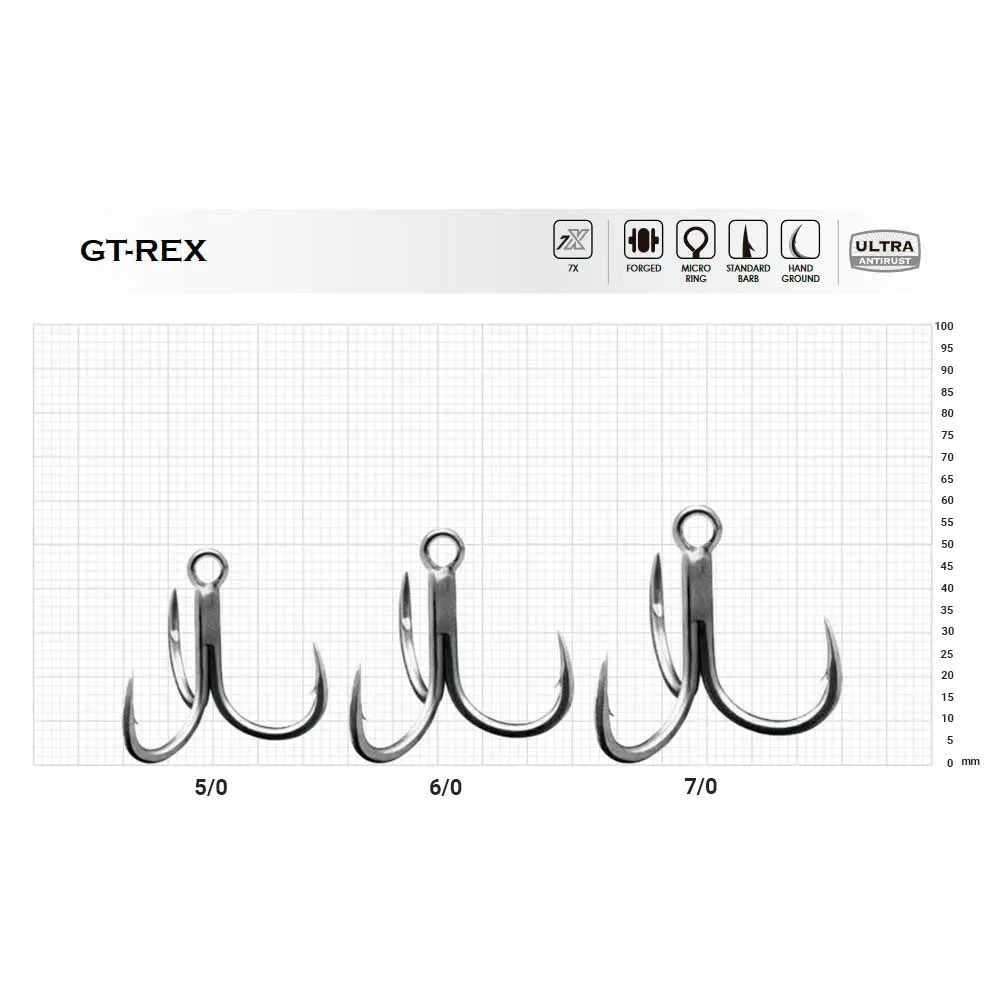 De BKK GT-REX is ontwikkeld om enorme reuzen- en tonijn te lijf te gaan. De handgeslepen haakpunt van de GT-REX in combinatie met BKK´s kenmerkende Ultra-Antirust Coating zorgen voor aanhoudende scherpte en penetratieprestaties. Alle details van de GT-REX, van het oog van de haak tot de punten, zijn ontworpen om de best presterende dreg te creëren voor uw zoutwaterpopping.