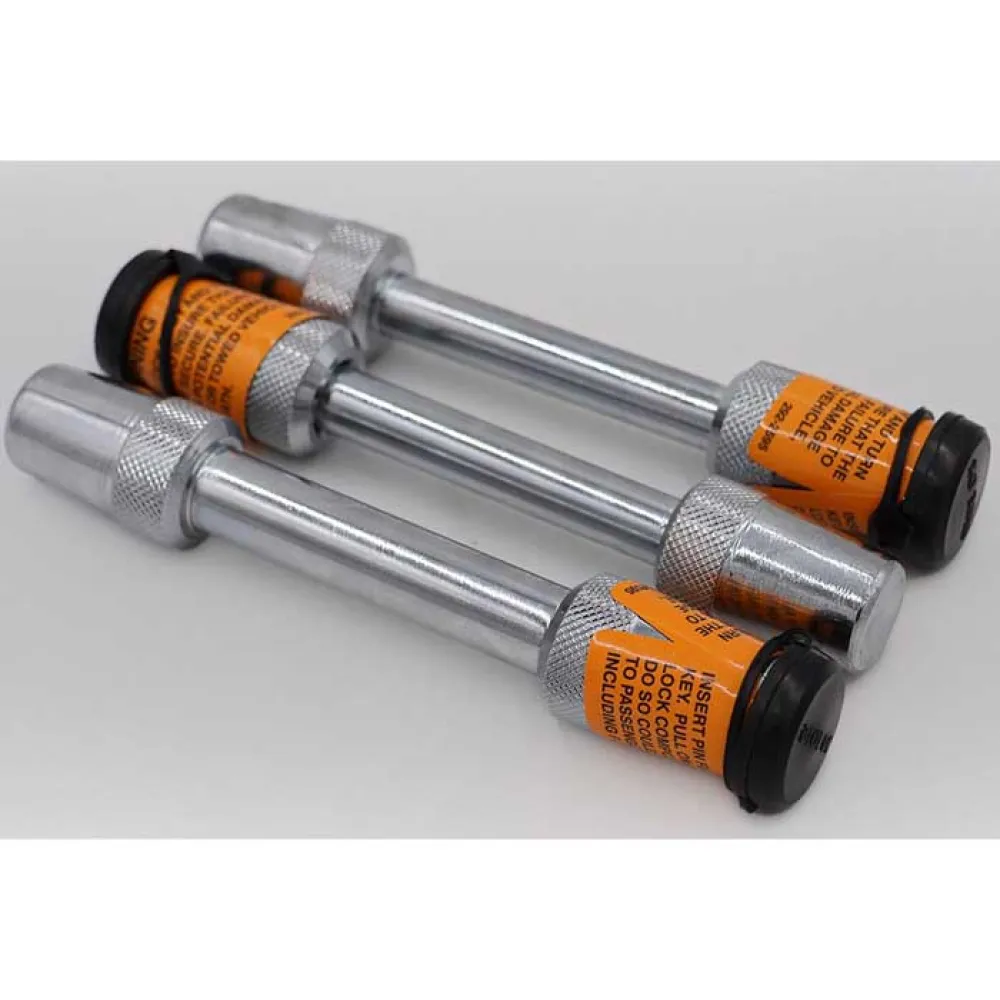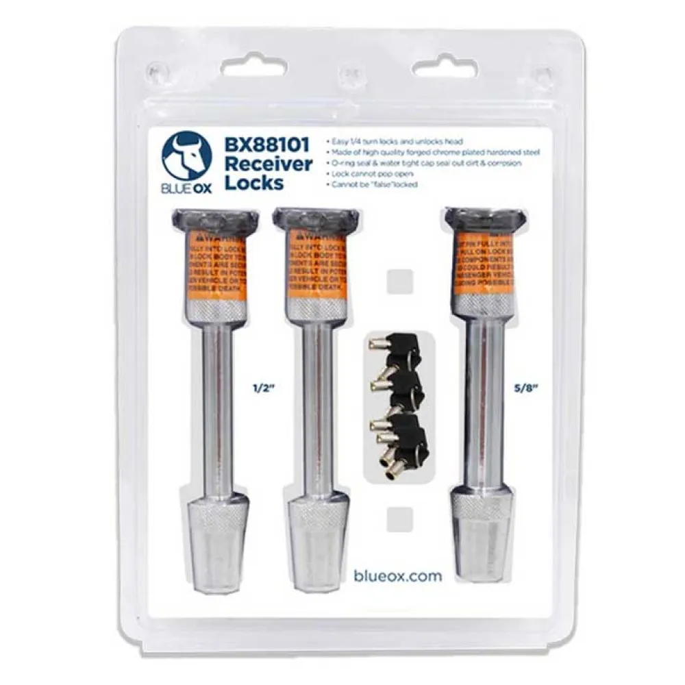 Blue Ox trekhaken worden aan de basisplaat en de trekhaak bevestigd om diefstal te voorkomen.