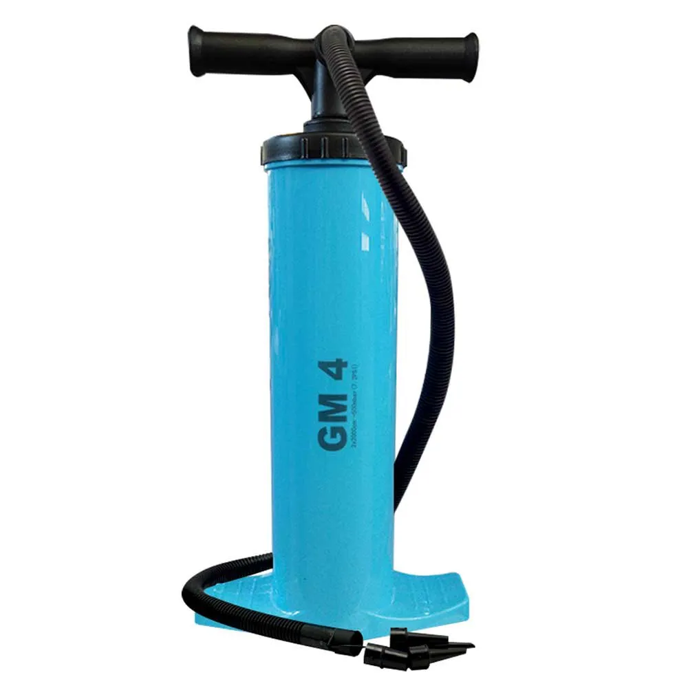 Dubbelwerkende handpomp, neemt de rugpijn weg bij het opblazen van spatborden, tenders of sup.