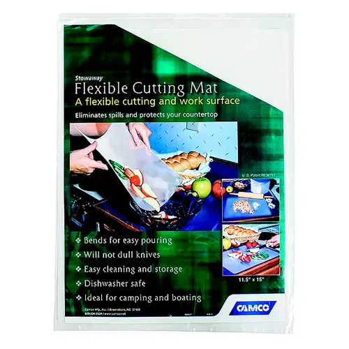Ontdek de perfecte culinaire metgezel voor uw leven op het water of onderweg met de CAMCO Flexibele Snijmat set. Deze set is speciaal ontworpen voor de unieke eisen van bootkombuizen, camperkeukens en elke compacte kookruimte, en herdefinieert gemak en efficiëntie. Zeg vaarwel tegen omvangrijke, zware houten of plastic planken die rondglijden en kostbare aanrecht- en opbergruimte in beslag nemen. Deze snijmatten bieden een duurzaam, stabiel en hygiënisch oppervlak voor al uw voedselbereidingsbehoeften, zodat u met vertrouwen kunt hakken, snijden en in blokjes snijden, waar uw avonturen u ook brengen.