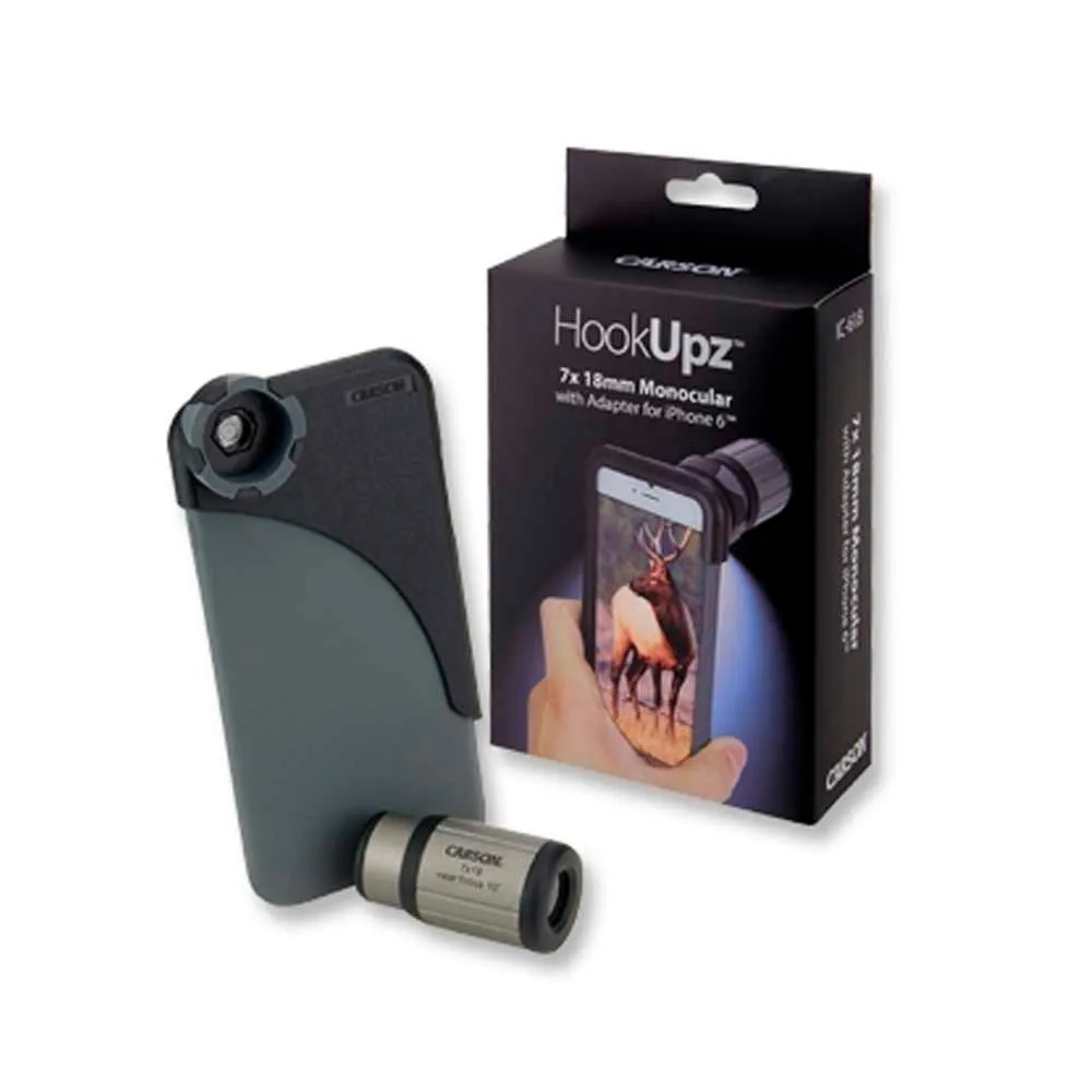 De hookupz™ adapter verbindt uw iPhone 6 eenvoudig met de meegeleverde closeup™ monoculaire verrekijker.