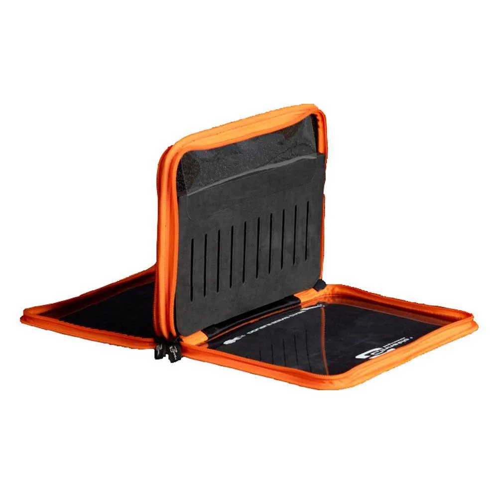 Een praktische en functionele dubbelzijdige koffer om onze egi's op een gemakkelijke en visueel efficiënte manier op te bergen. De egis worden afzonderlijk in de schuimrubberen basis gestoken en de transparante plastic flappen dienen om onze vingers te beschermen tegen de egis-kronen. Een interessant voorstel voor zowel gelegenheidsvissers als inktprofessionals.
