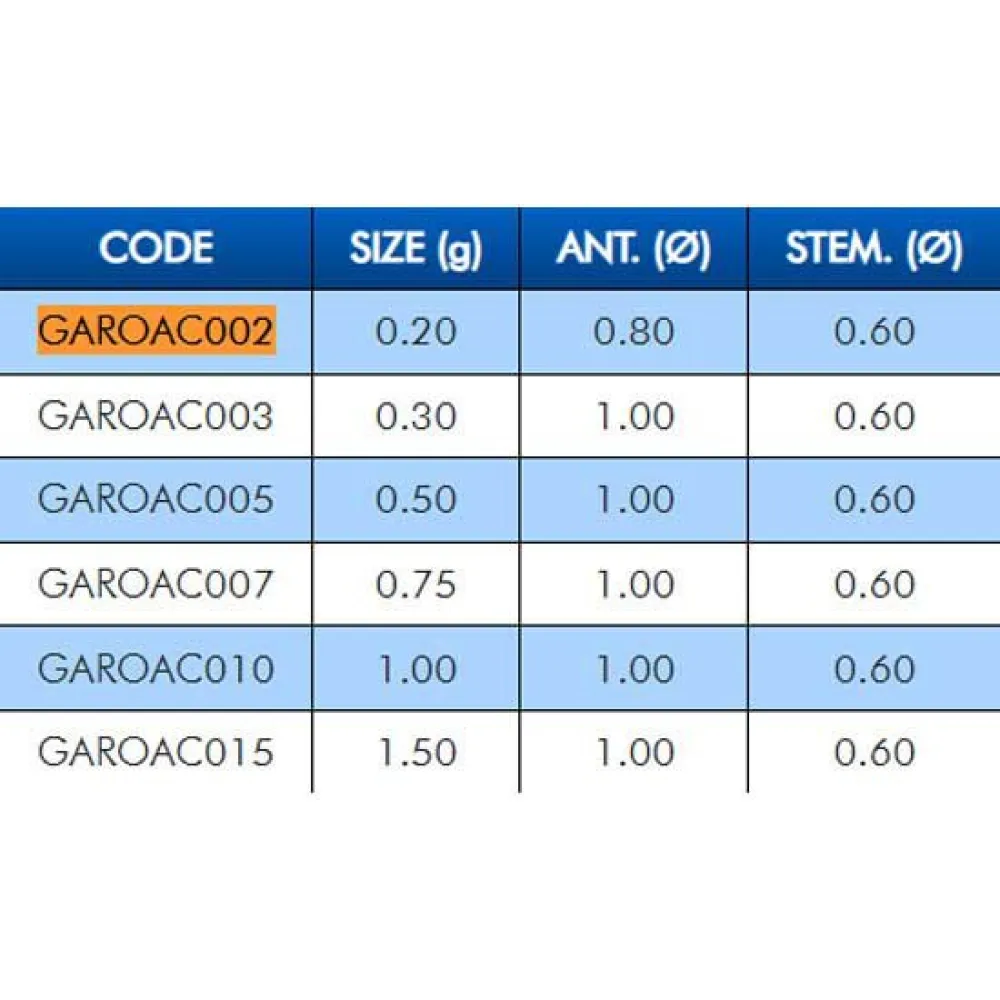 Beschikbare gewichten: Een uitgebreid assortiment voor alle dieptes en omstandigheden, inclusief 0.30g | 0.50g | 0.75g | 1.00g | 1.50g | 2.00g