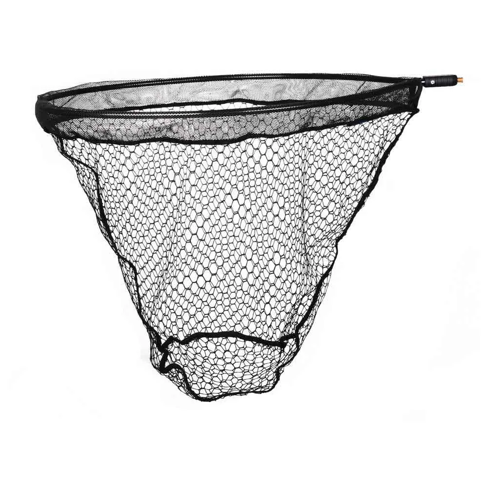 Het zachte, visvriendelijke net met 20mm maaswijdte is met behulp van een fijnmazig rubbermesh aan de metalen beugel gemonteerd.