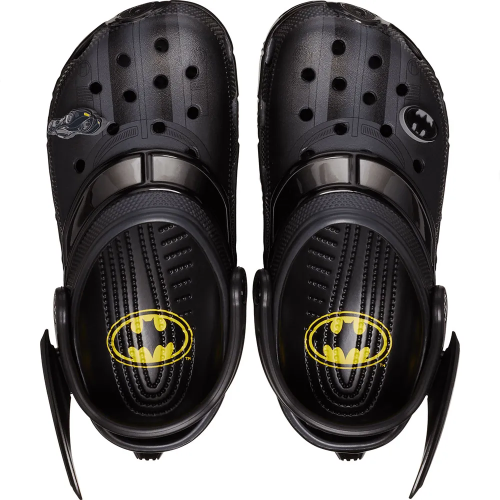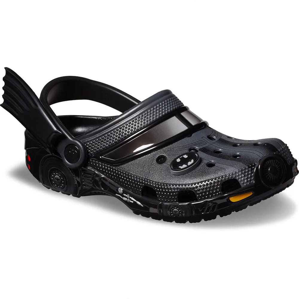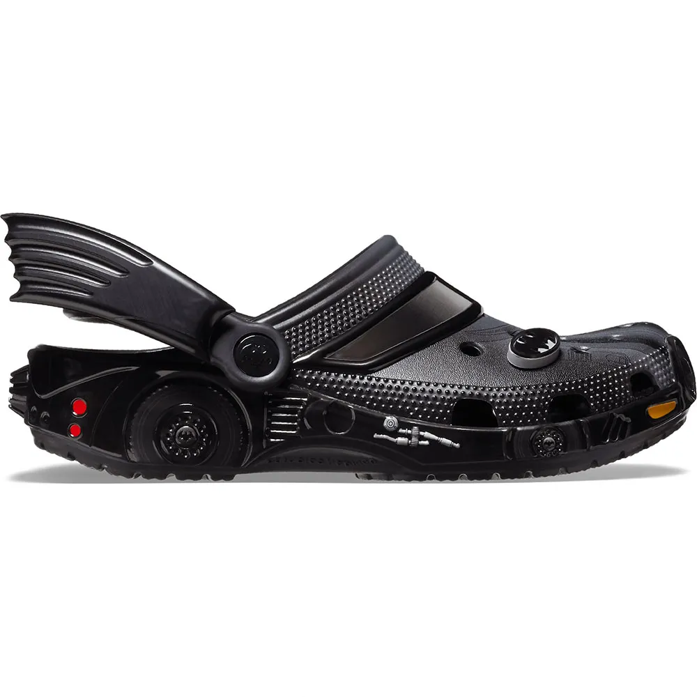 De Batman Batmobile Classic Clog is klaar om de nacht (en de dag) te veroveren met een ontwerp dat is geïnspireerd op Batmans rit - tot aan de vleermuisvleugels aan de zijkant van de band.