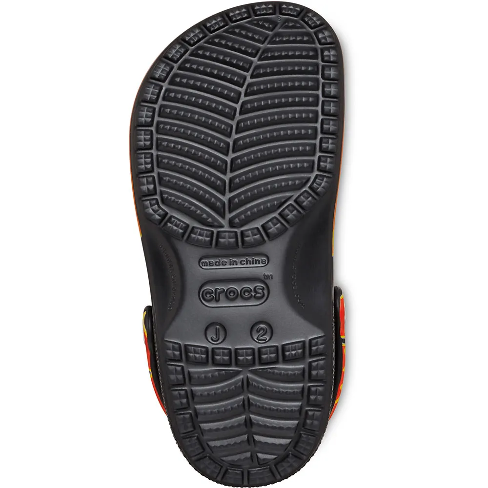 Een gedurfde vlammenprint maakt deze versie van de iconische clog extra cool.