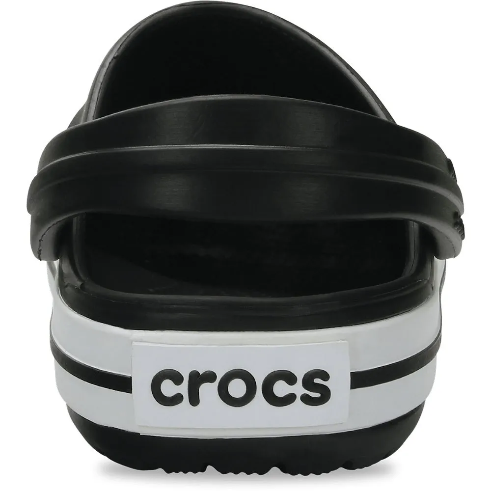 Een sportieve racestrepen geven een vleugje kleur aan de iconische Crocs-klompen.