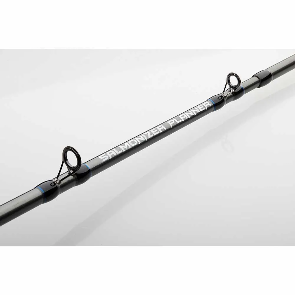 De Salmonizer Planner is uitgerust met premium componenten die zijn ontworpen voor langdurige prestaties. Seaguide-geleiders met SIC-inzetstukken zorgen voor een soepele lijnstroom en uitzonderlijke slijtvastheid, zelfs bij gebruik van gevlochten lijnen. De robuuste molenzitting zorgt voor een veilige en comfortabele grip, terwijl het ergonomische EVA-handvat de hele dag comfort en controle biedt, zelfs in natte omstandigheden.