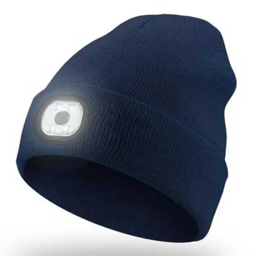 Gebreide muts met oplaadbare LED-lamp Een warme en comfortabele gebreide muts met een afneembare LED-lamp.