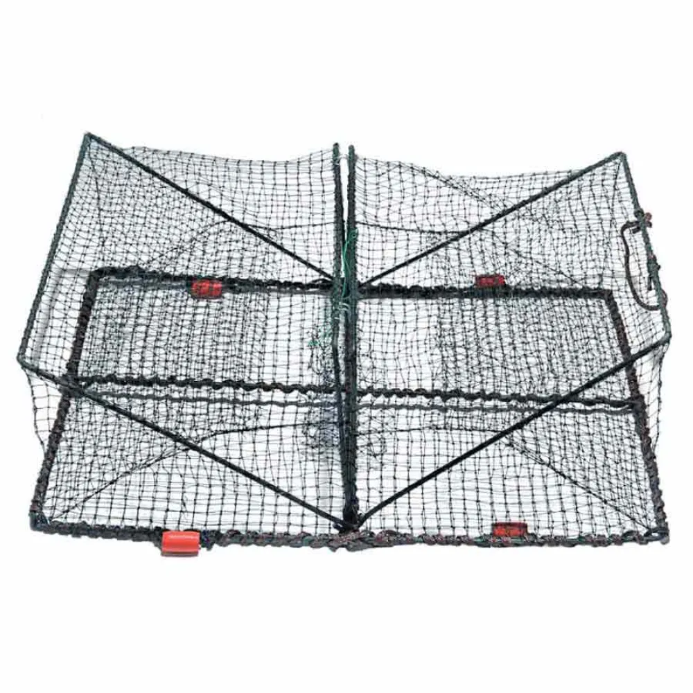 Strategische eenrichtingsingang: De fuik beschikt over vakkundig ontworpen, ingebouwde toegangspunten die een onweerstaanbaar en gemakkelijk pad creëren voor uw doelwit. Deze trechters leiden de vangst vakkundig gemakkelijk naar binnen, waardoor de toegang intuïtief is voor de inktvis, terwijl ontsnapping extreem moeilijk wordt gemaakt. Dit eenrichtingssysteem is de sleutel tot het hoge vangst- en retentiepercentage.