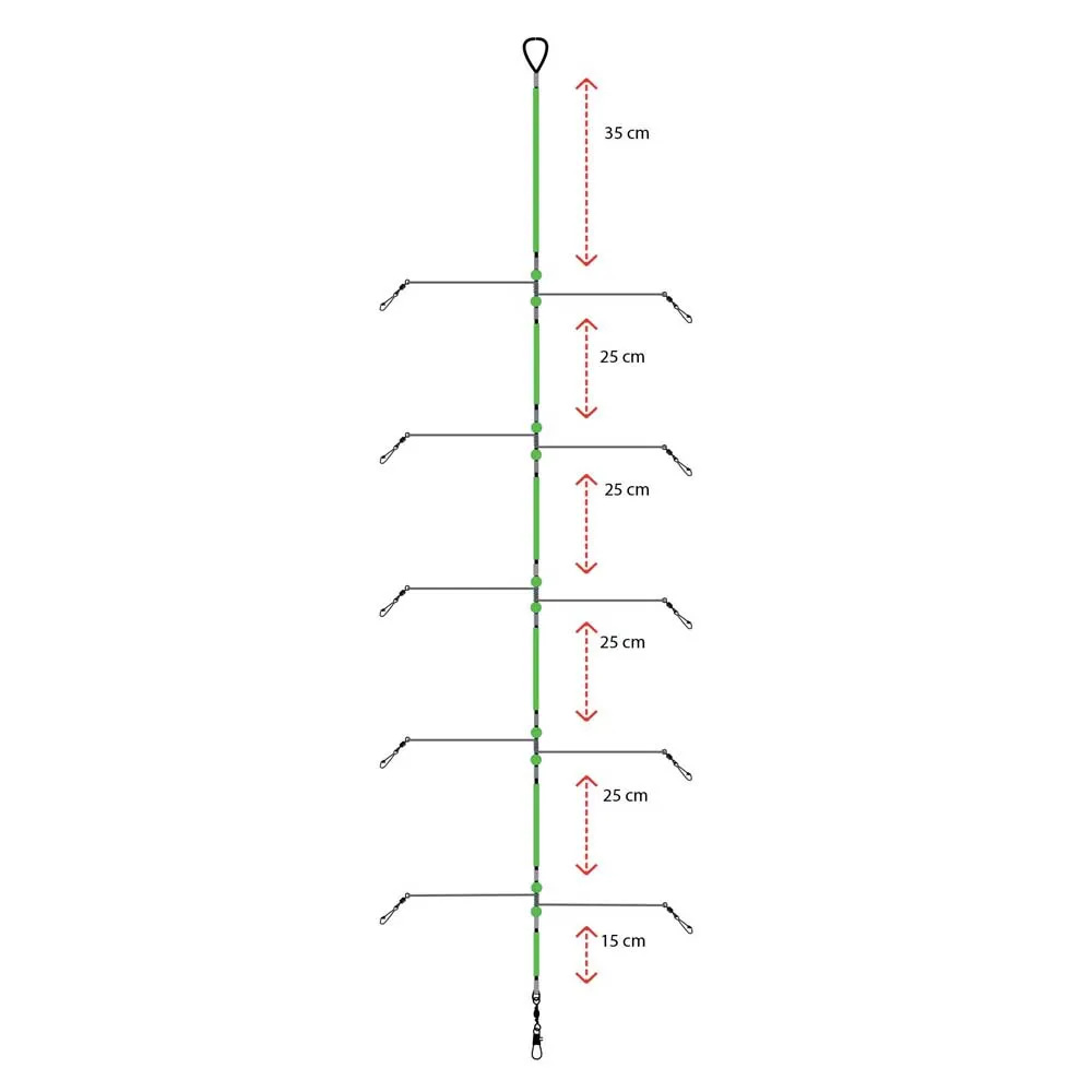 Dit is niet zomaar een onderlijn; het is een compleet, kant-en-klaar systeem, ontworpen voor maximale impact. Het innovatieve ontwerp stelt u in staat om een breed scala aan natuurlijk aas tegelijkertijd over een aanzienlijk deel van de waterkolom te presenteren. Door verticaal meer terrein te bestrijken, vergroot u drastisch uw kansen om trofee-formaat tandbaarzen, tegelvissen, snappers, kabeljauw en andere diepzeeroofdieren aan te trekken en te haken. De robuuste constructie zorgt ervoor dat het bestand is tegen de immense druk en barre omstandigheden van de diepzee, en biedt de betrouwbaarheid die u nodig heeft wanneer een vis van uw leven aan de lijn hangt.