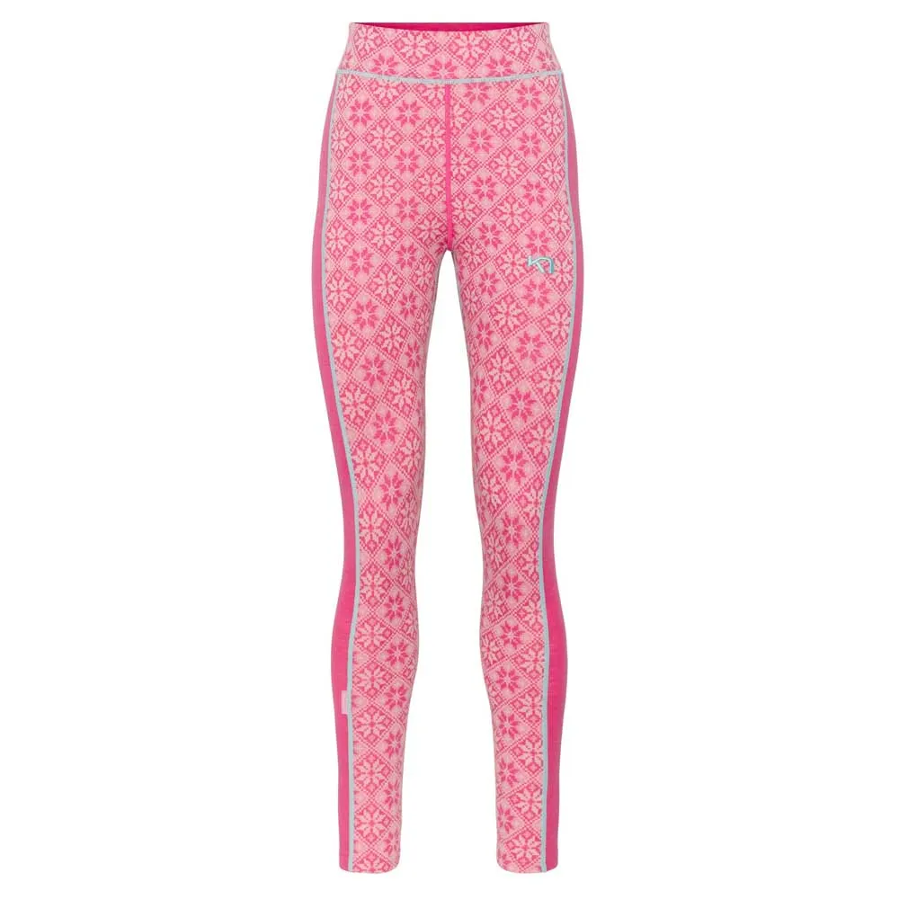 De Kari Traa Rose High Waist Pant is een dames baselayer legging van 100% merinowol over de volledige lengte, met een stijlvolle, vrouwelijke, Noordse look, een strak silhouet en een extra hoge, comfortabele taille.