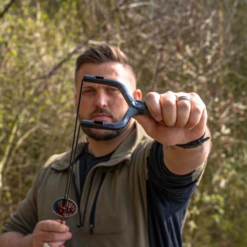 Ongeëvenaarde veelzijdigheid: De speciaal gevormde pouch is het hart van de veelzijdigheid van deze katapult. De unieke vorm en grootte zijn geoptimaliseerd om een breed scala aan populaire aassoorten, van pellets en partikels tot maïs en maden, veilig vast te houden en los te laten, zonder morsen of gedoe.