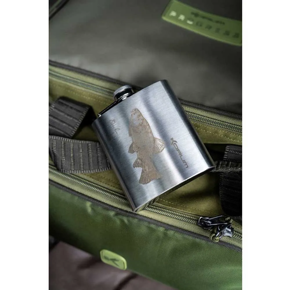 De Korum Classic serie biedt producten die synoniem staan voor traditionele witvisvangst. Deze prachtige 7oz Heupfles is voorzien van het mooie werk van hengelsportkunstenaar Steve Phillips. Het verbluffende, ingewikkeld gedetailleerde kunstwerk vangt de geest van de sport, waardoor deze fles een opvallend item is in de collectie van elke visser en een fantastische gespreksstarter. Het viert de schoonheid van de waterwereld en de passie die elke visreis drijft, en transformeert een functioneel item in een kunstwerk.
