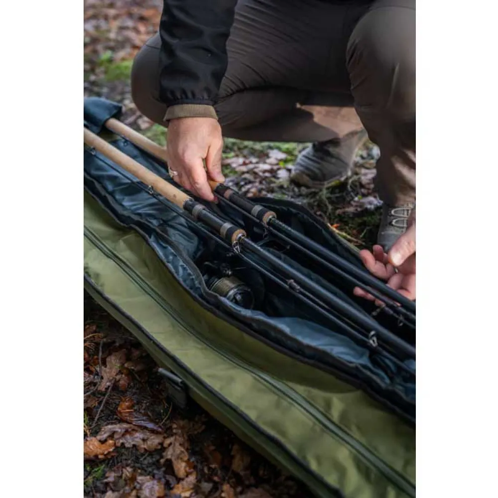 Een innovatieve nieuwe manier om je opgetuigde hengels en molens te vervoeren, samen met je shelters, brollies en bankware. Het compartiment voor je hengels scharniert weg van het achterste sheltercompartiment, wat alle voordelen van een foudraal biedt met extra hengelbescherming. Heeft een ruim, gevoerd gedeelte ontworpen om hengels en molens comfortabel te huisvesten, plus een groter achtercompartiment dat alle Korum shelters en brollies kan bevatten. Beschikt ook over een eenvoudig buitenvak voor netten, netstelen of banksticks. Er is ook een buitenfoudraal en riemvoorziening, voor natte items zoals shelters, tripods en netten. Compleet met afneembare en verstelbare gewatteerde schouderriem voor comfortabel transport.