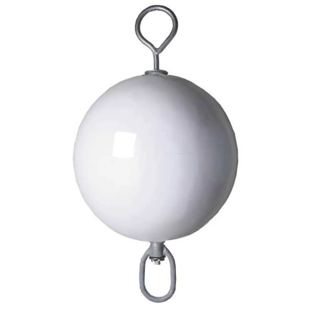 De MAJONI Short Mooring Buoy White is uitgerust met een sterke roestvrijstalen oogje dat fungeert als verbindingspunt voor de afmeerlijn of ankerketting van de boot. Het oogje is stevig in de boei ingebed, waardoor een stevig bevestigingspunt wordt geboden en het risico op losraken of beschadiging tijdens harde wind of ruw water wordt geminimaliseerd.