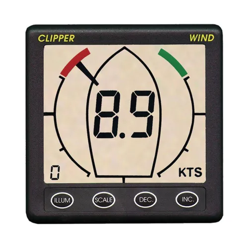 Het Clipper Wind-systeem heeft dezelfde vierkante behuizing van 110 mm als zijn zusterinstrumenten in het Clipper-assortiment. het display is uitzonderlijk groot en duidelijk, met 60 segmenten voor volledige 360 graden richtingindicatie. Windsnelheid wordt weergegeven in knopen, MPH of meters / seconde. De aanwijzerstijl kan worden geselecteerd, van het enkele hierboven weergegeven segment, tot meerdere segmenten voor meer duidelijkheid of een 'windex'-stijlindicator. De Masthead unit is beproefd en wordt standaard geleverd met 20 meter kabel