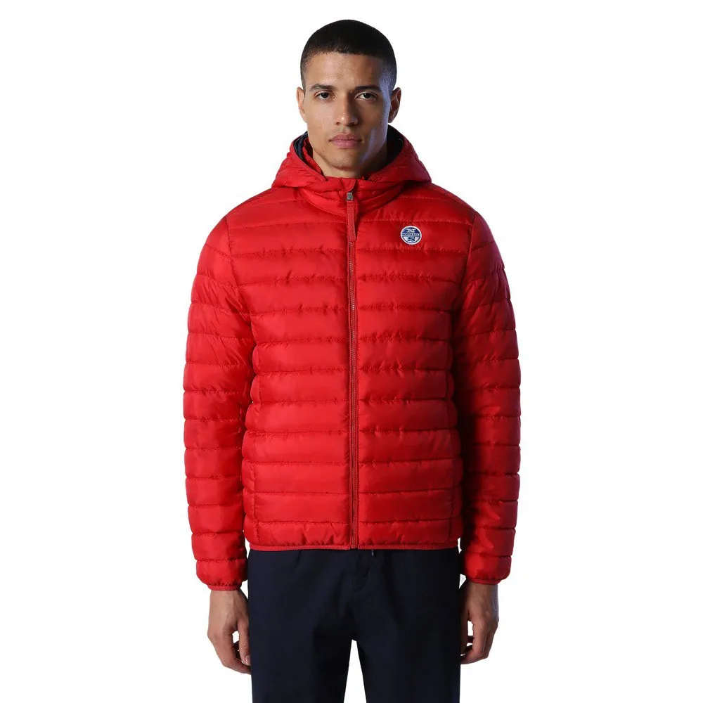 Gerecycled nylon micro-ripstop nylon pufferjack met Repreve-vulling en gestreepte quilting. Afgewerkt met een afneembare capuchon, steekzakken en een ritssluiting. Het perfecte tussenstuk en een ideale reisgenoot dankzij het lichtgewicht, veelzijdige ontwerp. Dit Skye pufferjack heeft een afneembare capuchon om te reageren op wisselende weersomstandigheden en is gemaakt van gerecycled nylon micro-ripstop met een waterafstotende coating die ervoor zorgt dat het water direct van het oppervlak glijdt. Royaal gevuld met Repreve-vulling, een innovatieve vezel gemaakt van gerecyclede plastic flessen, is het ontwerp afgewerkt met een maxi North Sails-logo aan de binnenkant.